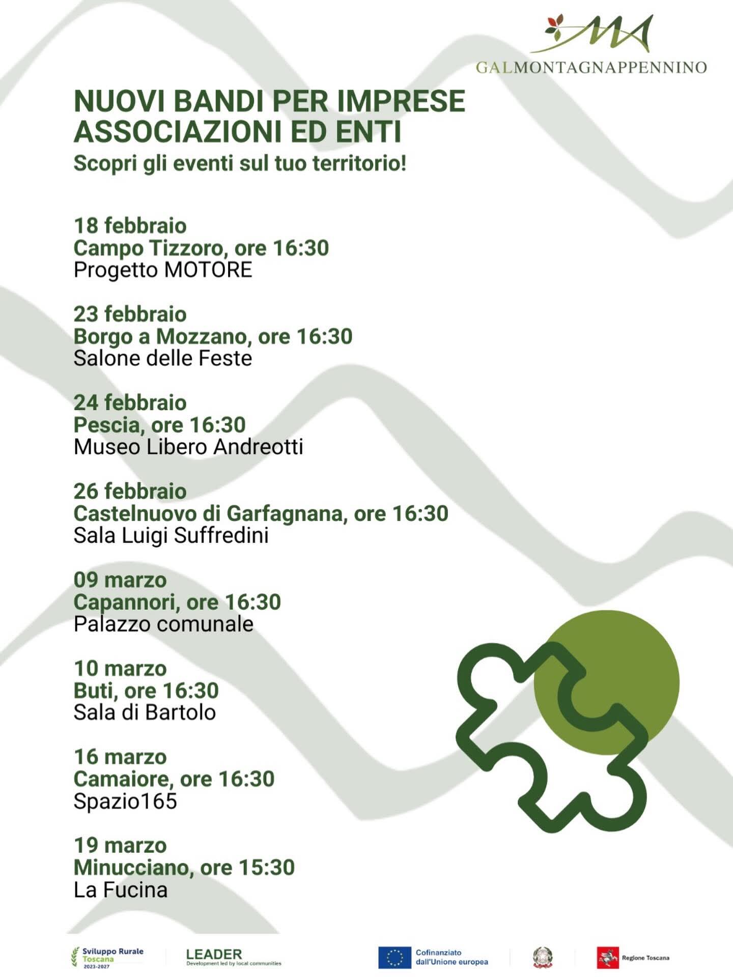 🧩 Tutti gli interessati sono invitati a partecipare all’incontro più vicino per conoscere nel dettaglio le opportunità di finanziamento disponibili.